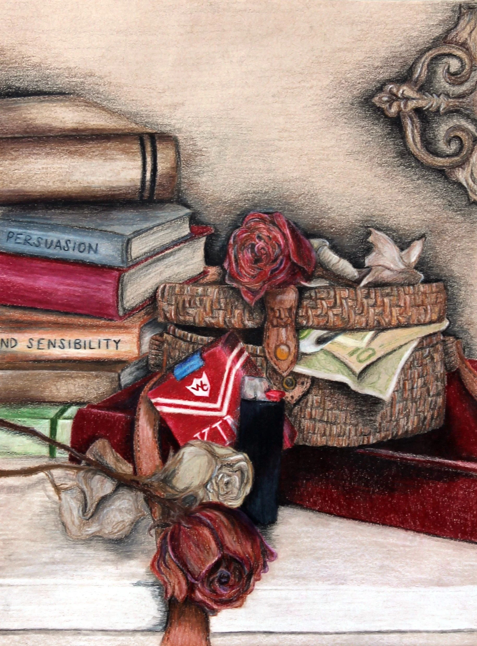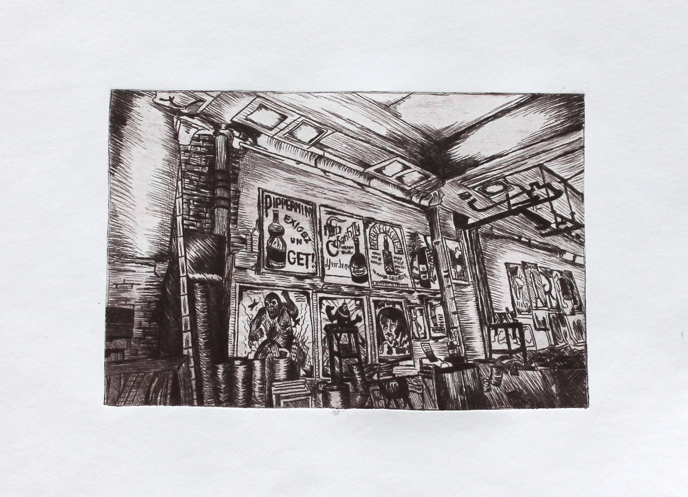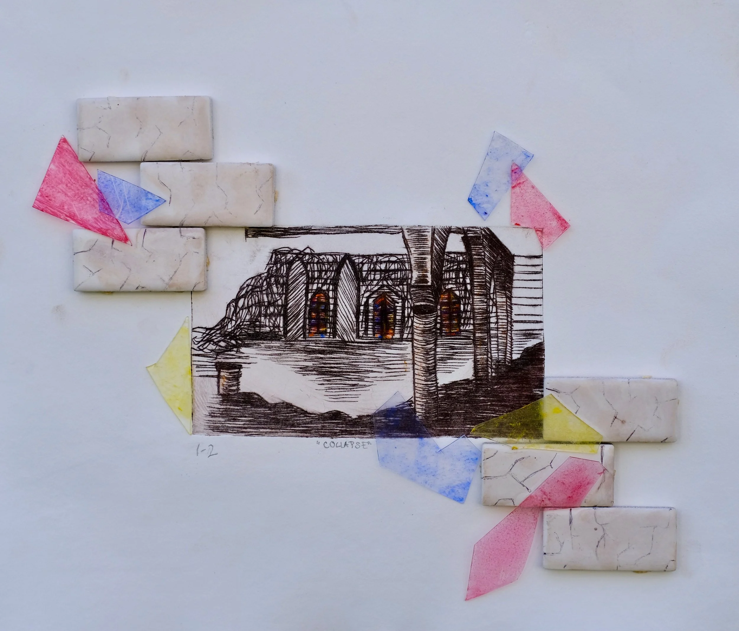 Programs Used: Adobe Illustrator, Adobe Photoshop, Acrylic Paint, Intaglio Printmaking, Mixed Media Collage, Colored Pencil, Charcoal, Wood Burning, Printmaking.